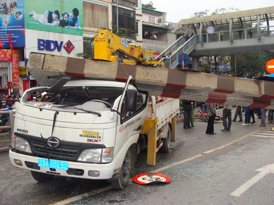 Theo Trung úy Đặng Văn Trường, nguyên nhân ban đầu được xác định là do xe cẩu đã vượt quá chiều cao khi lên cầu. Thông tin từ người dân, thời điểm xảy ra tai nạn, chiếc xe cẩu chạy với tốc độ khá nhanh. Cú va chạm mạnh đã khiến thanh chắn đổ sập đè lên cabin, đồng thời va chạm với chiếc xe máy mang biển kiểm soát 89-H4 3107.