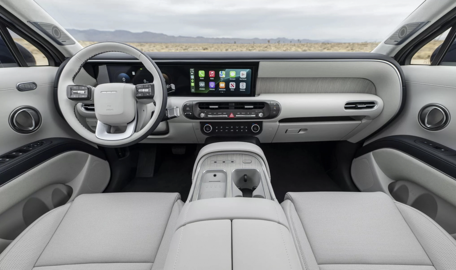 Vô-lăng xe được giữ nguyên từ Santa Fe, cùng với đó là cặp màn hình đôi trung tâm liền mạch với kích thước 12,3 inch mỗi bên. Hyundai Palisade 2026 trở lại với những phím bấm cơ học giúp người dùng thao tác dễ dàng hơn thay vì hoàn toàn trên màn hình.