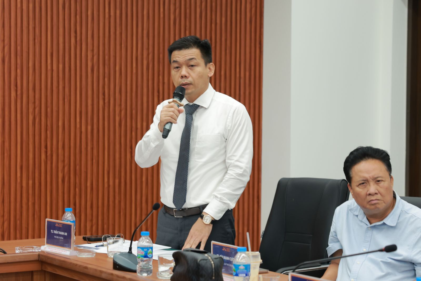 Phát biểu khai mạc Khai giảng lớp đào tạo nghiệp vụ TS Trần Thanh An - Phó Hiệu trưởng Trường Đại học Công nghệ GTVT cho biết, việc triển khai lớp đào tạo nghiệp vụ đường sắt chuyên sâu chuyên đề “Quy trình phục vụ hành khách tại ga và kỹ năng giao tiếp chuyên nghiệp” là một dấu mốc quan trọng trong lộ trình thực hiện Quyết định số 374/QĐ-TTg của Thủ tướng Chính phủ giao Trường Đại học Công nghệ GTVT là đầu mối dẫn dắt trung tâm đào tạo xuất sắc tài năng về công nghệ giao thông và hạ tầng tiên tiến thông minh.