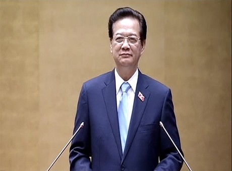 Thủ tướng Chính phủ Nguyễn Tấn Dũng thay mặt Chính phủ đọc Báo cáo về tình hình kinh tế-xã hội năm 2014 và nhiệm vụ năm 2015