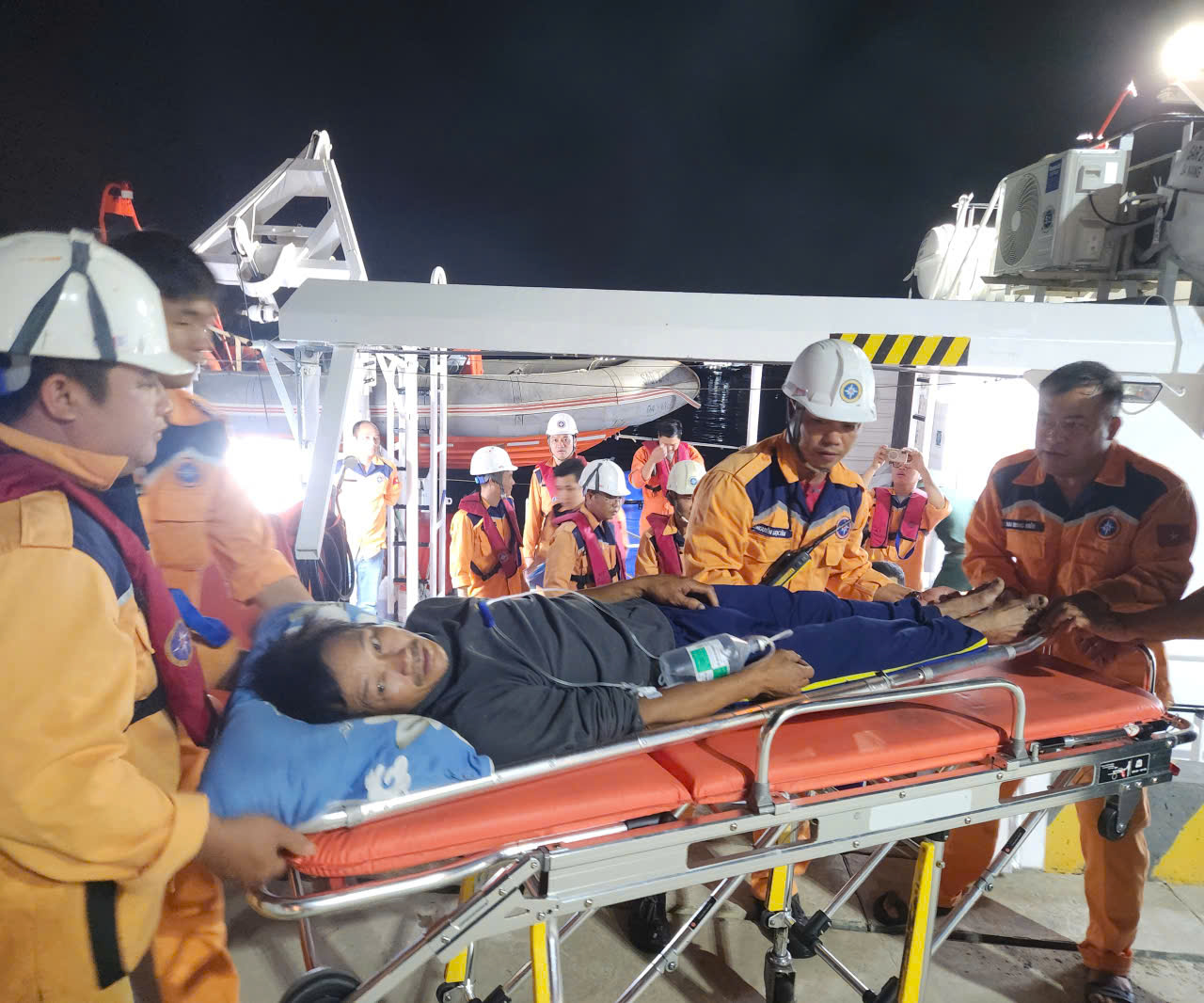 Trong suốt hành trình đưa nạn nhân vào bờ, đội ngũ y tế liên tục theo dõi, duy trì các biện pháp chăm sóc y tế nhằm ổn định tình trạng bệnh nhân.