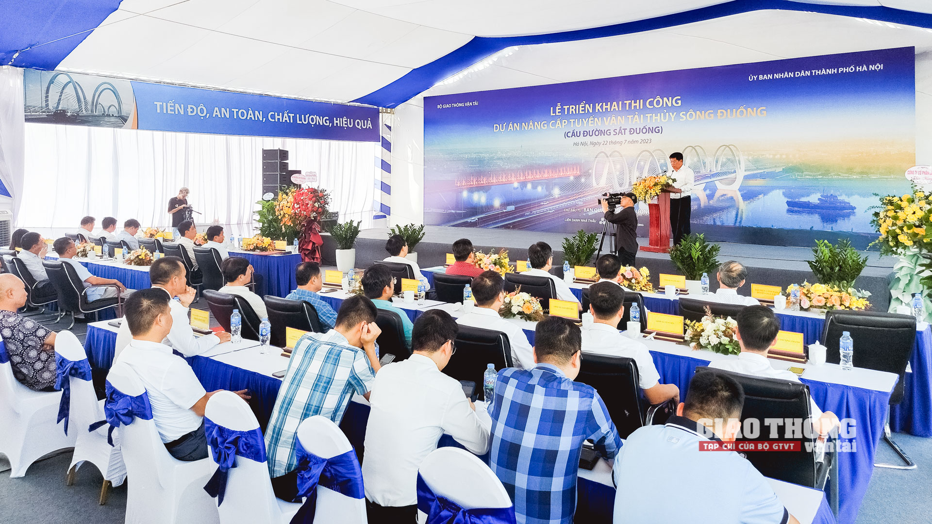 Sáng nay (22/7), Bộ GTVT chủ trì, phối hợp với UBND TP. Hà Nội và các đơn vị liên quan tổ chức Lễ triển khai thi công Dự án nâng cấp tuyến vận tải thủy sông Đuống (cầu đường sắt Đuống). Dự án do Ban QLDA Đường sắt (Bộ GTVT) làm chủ đầu tư.