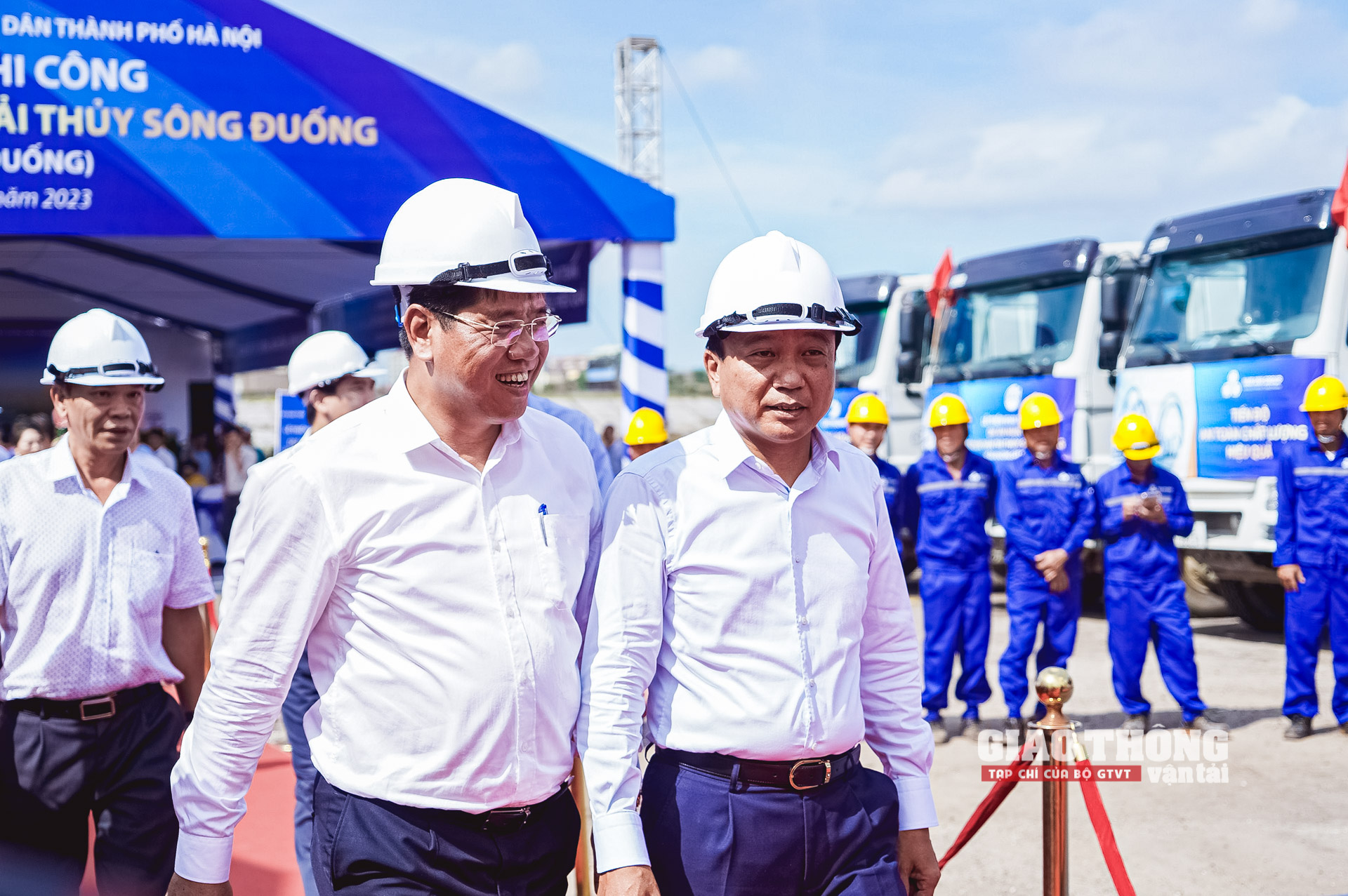 Lãnh đạo Bộ GTVT, UBND TP. Hà Nội và các cơ quan, đơn vị thực hiện nghi thức khởi công dự án