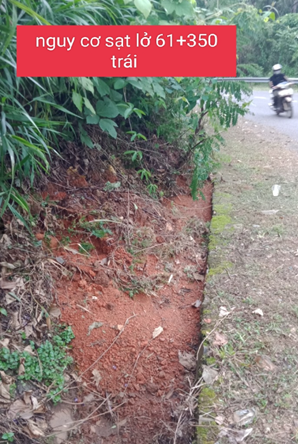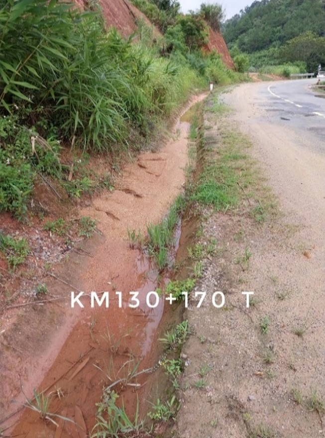 Trên tuyến Trường Sơn Đông, tỉnh Lâm Đồng, sạt lở taluy dương tại Km642E+250(P), Km649+800(P) bùn đất khi có mưa tràn ra toàn bộ mặt đường, Km650+550(P), Km669+400(T); khối lượng ước tính khoảng 2.000m3.