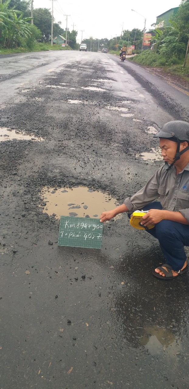 Cùng với đó, mặt đường hư hỏng (rạn nứt, sình lún, ổ gà) tại các vị trí: Phạm vi đèo Bảo Lộc tại vị trí Km98+700 - Km98+750 (P); Km99+188 - Km99+200 (P); Km99+240 - Km99+293 (T,P); Km99+850 - Km99+875(T,P); Km101+455 - Km101+490(T,P); Km101+912 - Km102+050(T); Km102+00 - Km102+050(P); Khối lượng 1.600 m2.