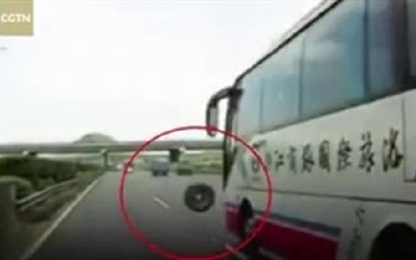 Chiếc lốp rơi ra từ xe tải phía trước đáp trúng kính chắn gió xe buýt chở 14 du khách Hong Kong trên một đường cao tốc ở Trung Quốc.