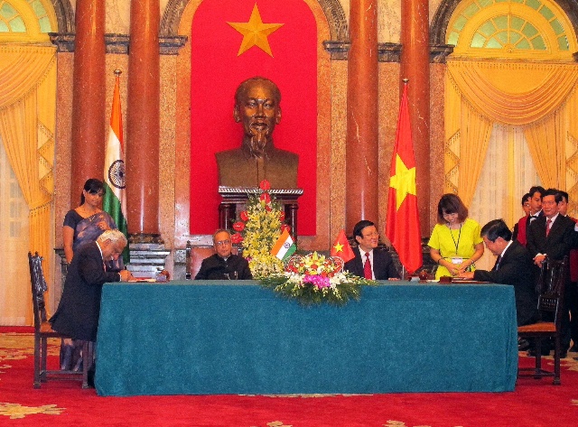 Biên bản ghi nhớ được ký dưới sự chứng kiến của Chủ tịch nước Trương Tấn Sang và Tổng thống Ấn Độ Pranab Mukherjee cùng đại diện lãnh đạo hai nước, trong khuôn khổ chuyến thăm cấp nhà nước của Tổng thống Cộng hòa Ấn Độ tới Việt Nam.