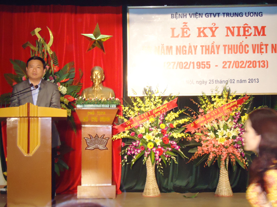 Tại, Lễ kỷ niệm 58 Ngày Thầy thuốc Việt Nam, Bộ trưởng Định La Thăng đã gửi lời chúc mừng tới toàn thể các bác sỹ, y tá, CBCNV Bệnh viện GTVT Trung ương. Hoan nghênh và luôn tự hào những kết quả mà tập thể bác sỹ, y tá… Bệnh viện đã làm được trong thời gian qua, mặc dù trong điều kiện nền kinh tế của đất nước nói chung và ngành GTVT còn gặp nhiều khó khăn.