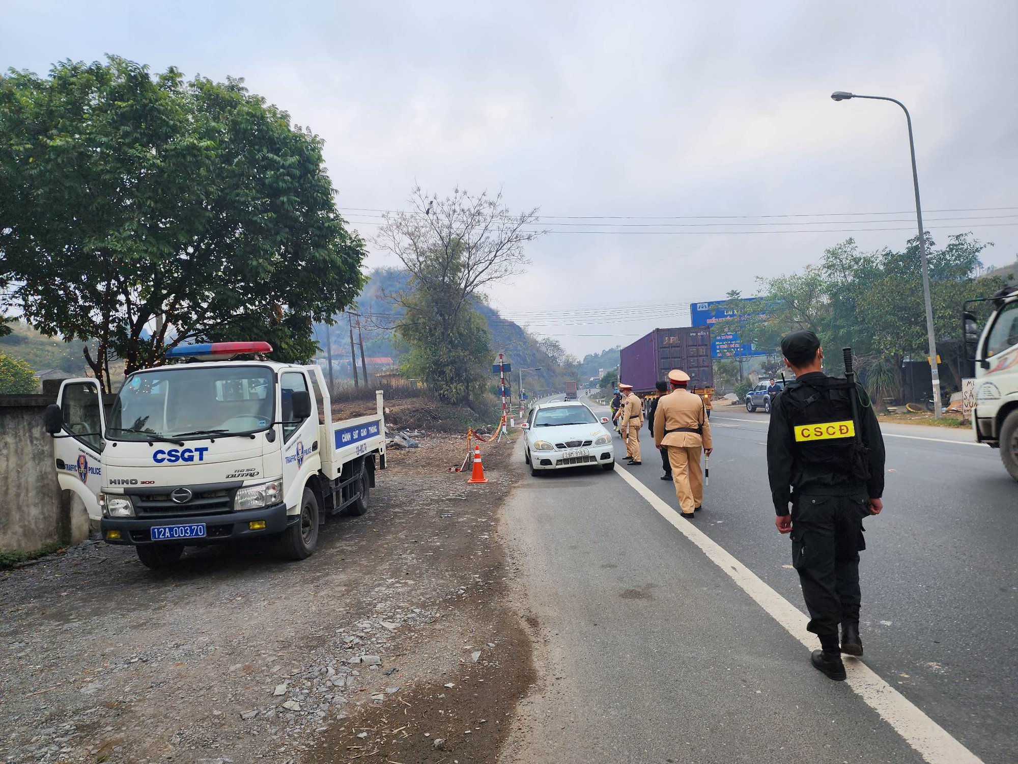Chiều 12/1, ghi nhận của PV Tạp chí Giao thông vận tải trên tuyến QL1 qua địa bàn huyện Cao Lộc (tỉnh Lạng Sơn), tổ công gồm lực lượng thuộc Phòng CSGT và Phòng Cảnh sát Cơ động Công an tỉnh Lạng Sơn tiến hành dừng, kiểm tra phương tiện ô tô, xe máy lưu thông trên tuyến đường ngay từ đầu vào TP Lạng Sơn.