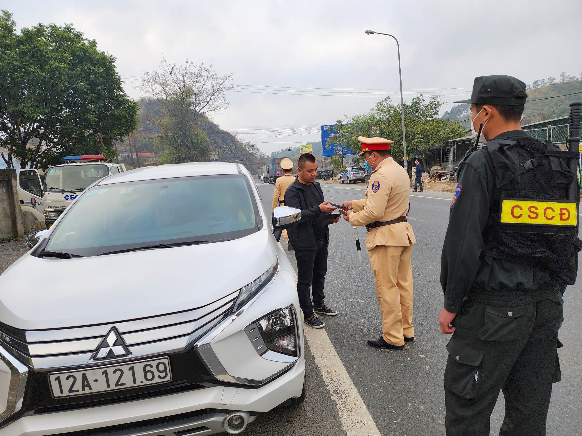 Tiếp đó, tổ công tác tiến hành dừng xe ô tô mang BKS 12A-121.xx do anh Hoàng Trung T. (sinh năm 1985, ở Thành phố Lạng Sơn, tỉnh Lạng Sơn). Ngay sau khi dừng xe, anh T. bất ngờ, không biết mình vi phạm lỗi gì, thì được tổ công tác thông báo lực lượng chức năng đang thực hiện chuyên đề đảm bảo trật tự ATGT trong dịp trước, trong và sau Tết nguyên đán Quý Mão 2023 và yêu cầu tài xế T. xuất trình GPLX, giấy tờ xe để tiến hành kiểm tra nồng độ cồn. Kết quả, anh T. không vi phạm nồng độ cồn, tổ công tác nói lời cảm ơn và mời anh T. tiếp tục lộ trình.