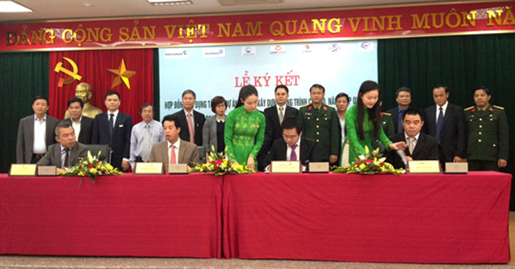 Đại diện ngân hàng Vietcombank, Vietinbank, LietViet Post Bank cùng nhà đầu tư và doanh nghiệp dự án BOT Hà Nội – Bắc Giang ký kết hợp đồng tín dụng tài trợ vốn cho Dự án