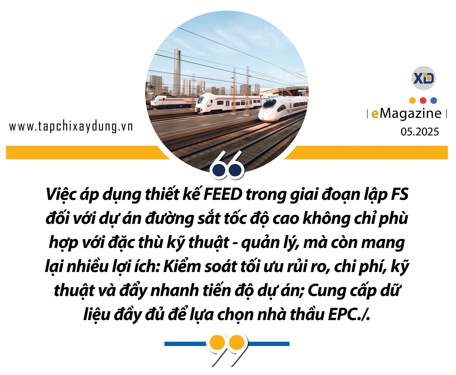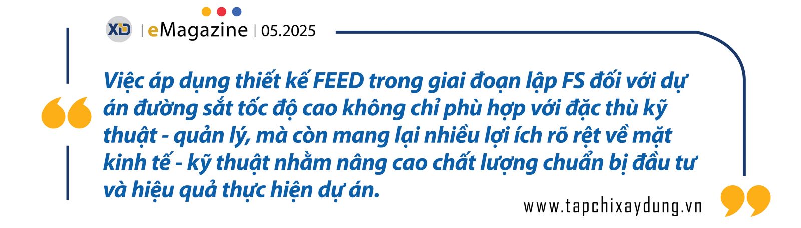 Những kinh nghiệm quốc tế nêu trên cho thấy rằng FEED là một công cụ không thể thiếu trong các dự án đường sắt hiện đại. Việc thể chế hóa FEED không chỉ giúp nâng cao chất lượng khâu chuẩn bị đầu tư, mà còn góp phần minh bạch hóa quá trình lựa chọn nhà thầu, kiểm soát hiệu quả tài chính công và đảm bảo an toàn vận hành trong dài hạn.
