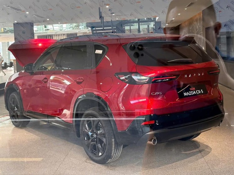 Mazda CX-5 có những đường gân nổi sắc nét bên thân xe, bộ mâm 19 inch lớn nhất phân khúc cùng các chi tiết ốp đen thể thao. Mazda CX-5 2026 thay đổi mạnh mẽ ở phần đuôi với những đường nét gân guốc, cơ bắp đậm chất SUV. Xe được làm mới đèn hậu LED hình móc câu đặt ngược, tên thương hiệu cách điệu ở trung tâm, cản sau cỡ lớn và ống xả 2 bên cân đối.