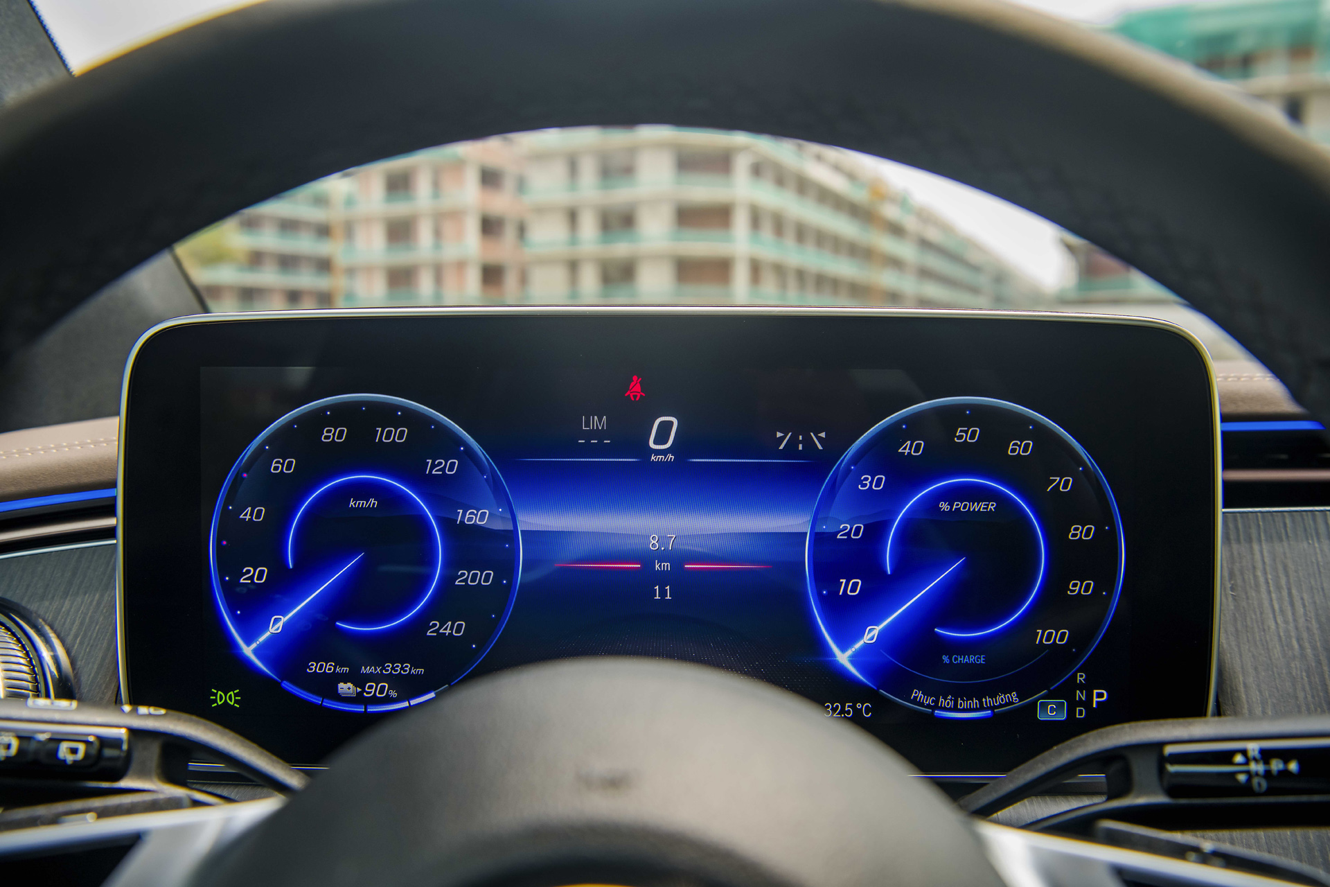Gói thiết kế nội thất Electric Art giúp mẫu SUV điện cỡ trung của Mercedes-Benz tạo nên cảm giác siêu thực từ tương lai cho người dùng. Khoang lái trang bị màn hình giải trí trung tâm công nghệ OLED kích thước 12,8 inch với tính năng điều khiển cảm ứng cùng bảng đồng hồ kỹ thuật số sau vô-lăng 12,3 inch.