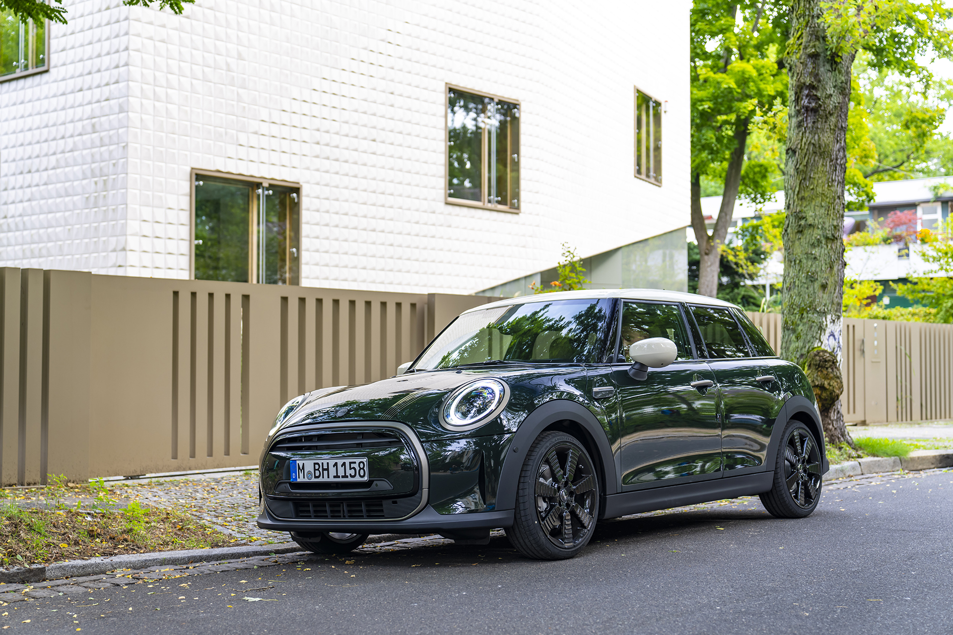 Xu hướng tối giản hóa bắt đầu được thương hiệu xe cỡ nhỏ hạng sang Anh quốc áp dụng trên Cooper S 5 cửa Resolute Edition 2023. Theo đó, các chi tiết mạ crôm cổ điển được lược bỏ bớt. Ngoại thất xe sử dụng màu Rebel Green vốn chỉ sử dụng trên các phiên bản hiệu năng cao John Cooper Works. Mui và ốp gương sơn màu trắng Pepper.