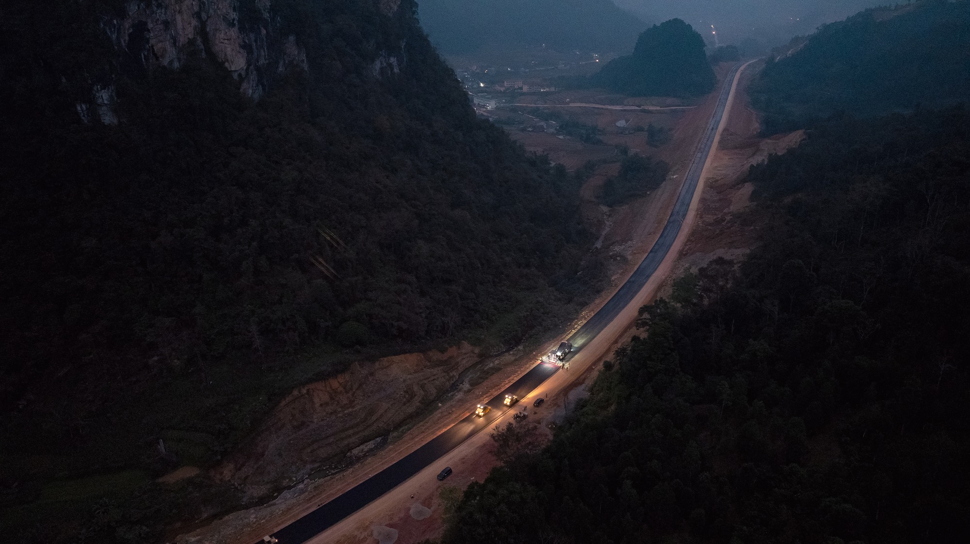 Tại khu vực Km58 (xã Đông Khê, tỉnh Cao Bằng),chỉ sau hai ngày triển khai, lực lượng thi công đã trải thảm được hơn 1 km bê tông nhựa. Hiện dây chuyền thảm nhựa vẫn duy trì thi công cả ngày lẫn đêm để tăng sản lượng lên mức khoảng 2.000 tấn mỗi ngày.