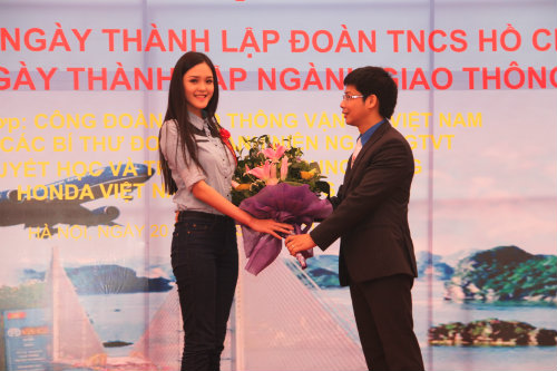 Bí thư Đoàn Thanh niên Bộ Nguyễn Minh Hiếu tặng hoa cho
