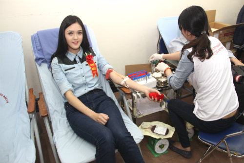 Á hậu Việt Nam Hoàng Anh dự và tham gia hiến máu tại Ngày hội