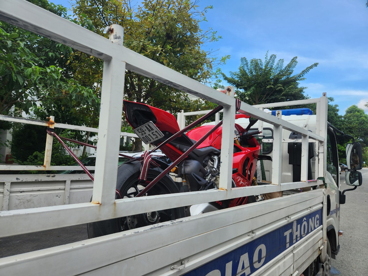 Tại buổi làm việc, người vi phạm đã thừa nhận các hành vi vi phạm, do đó Phòng CSGT Công an TP. Hồ Chí Minh và Công an TP. Thủ Đức đã tiến hành lập biên bản vi phạm hành chính cụ thể như sau: Đối với đoạn clip trên cầu Ba Son (địa bàn phường Bến Nghé, Quận 1): Phòng PC08 đã lập biên bản vi phạm với các hành vi vi phạm "Điều khiển phương tiện che lấp biển số, không có giấy đăng ký xe, không có giấy phép lái xe" và tạm giữ phương tiện BKS 59AA-001.51;