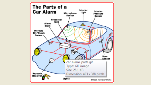 Nếu bạn muốn suy nghĩ về một hệ thống báo động ô tô ở dạng đơn giản nhất, nó chỉ là một hoặc nhiều cảm biến kết nối với còi báo động. Kiểu này sẽ có một công chắc trên cửa của lái xe và nó sẽ chuyển thông tin vì vậy nếu có ai đó mở cửa, chuông báo động sẽ hoạt động. Bạn có thể tự lắp đặt cho mình một hệ thống báo động với công tắc, dây nối và còi báo động.