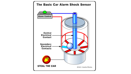 Ý tưởng về cảm biến va chạm khá đơn giản. Nếu có ai đó chạm vào, xô đẩy hoặc di chuyển chiếc xe của bạn, cảm biến này sẽ gửi một tín hiệu đến bộ não cho thấy cường độ của chuyển động. Tùy thuộc vào mức độ nghiêm trọng của va chạm, bộ não báo hiệu một tiếng bíp còi cảnh báo hoặc phát ra âm thanh báo động đầy đủ.