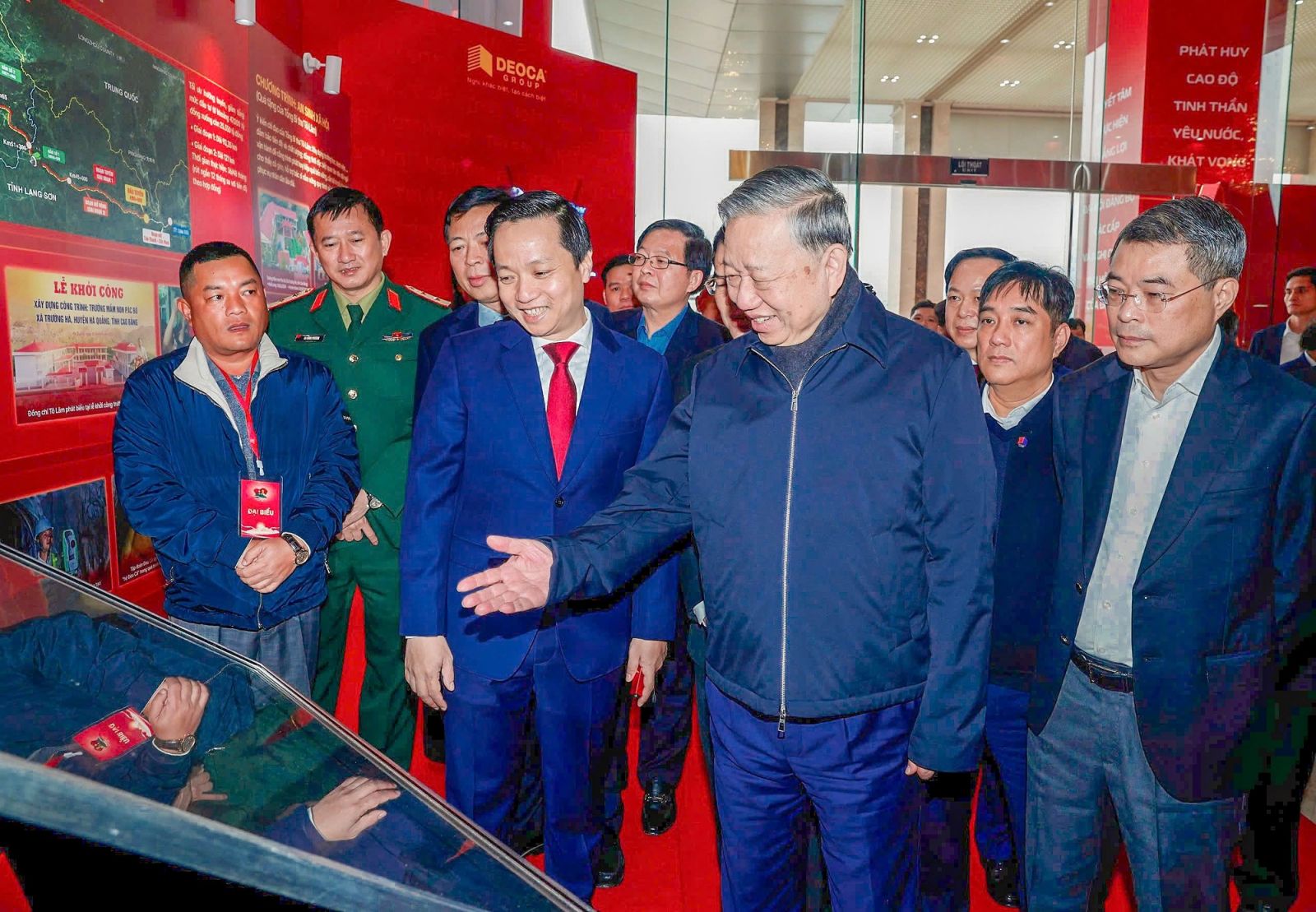 Sáng 28/1, Tổng Bí thư Tô Lâm đã dẫn đầu đoàn đại biểu cấp cao của Đảng và Nhà nước đến thăm và làm việc tại tỉnh Cao Bằng. Trước khi làm việc với Ban Chấp hành Đảng bộ tỉnh, Tổng Bí thư đã tham quan không gian triển lãm 10 sự kiện nổi bật của Cao Bằng trong năm 2025, trong đó có sự kiện thông tuyến giai đoạn 1 và khởi công giai đoạn 2 dự án cao tốc Đồng Đăng – Trà Lĩnh.