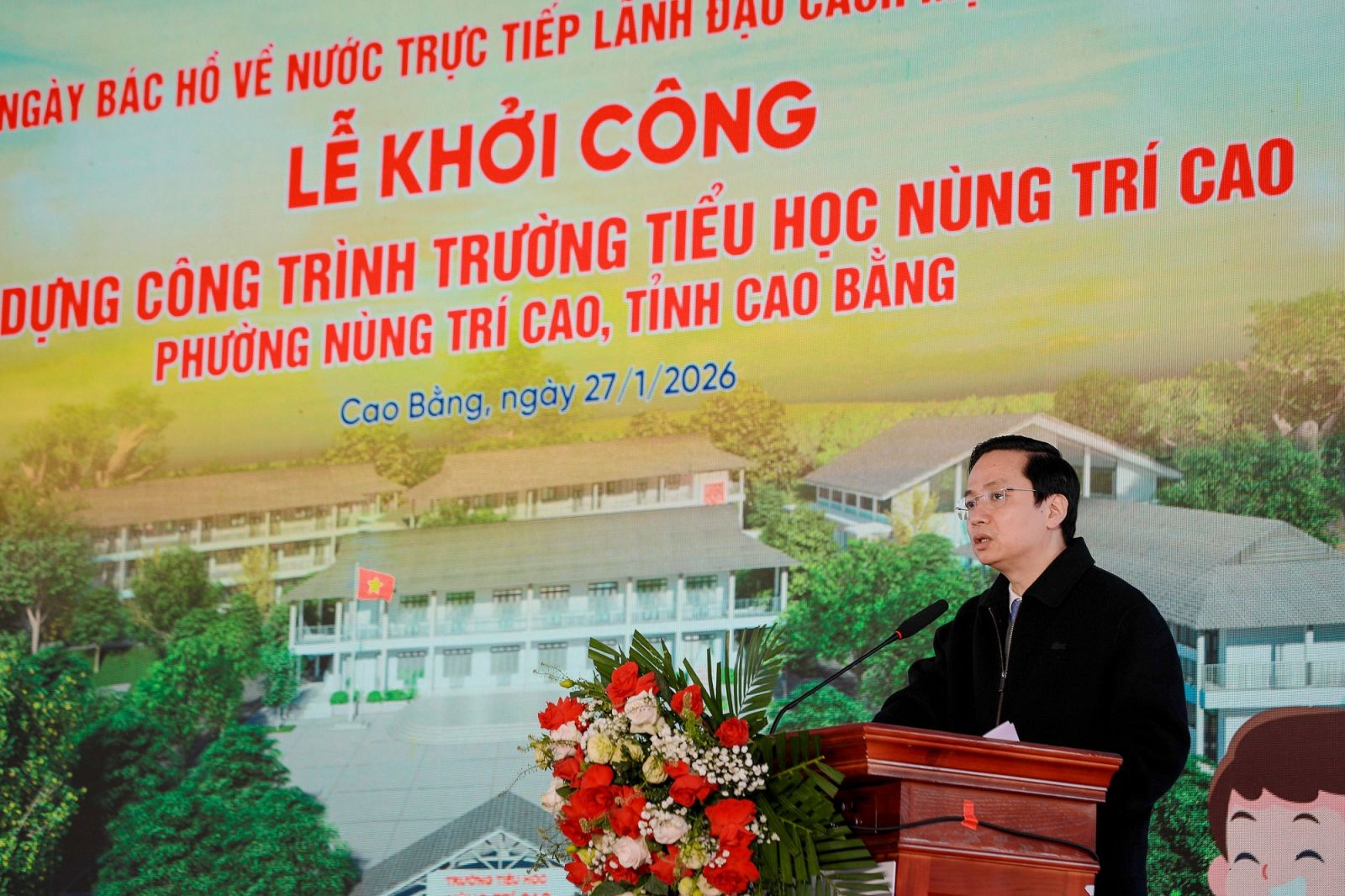 Phát biểu tại lễ khởi công, ông Lê Hải Hòa – Chủ tịch UBND tỉnh Cao Bằng, nhấn mạnh công trình là kết tinh giữa tình cảm đặc biệt của Tổng Bí thư, sự quan tâm, kết nối của Bộ Công an và tinh thần trách nhiệm, khai phóng của Tập đoàn Đèo Cả dành cho tỉnh Cao Bằng. Việc triển khai xây dựng điểm trường là minh chứng sinh động cho cách làm mới: Nhà nước – lực lượng vũ trang – doanh nghiệp cùng chung tay vì nhân dân.