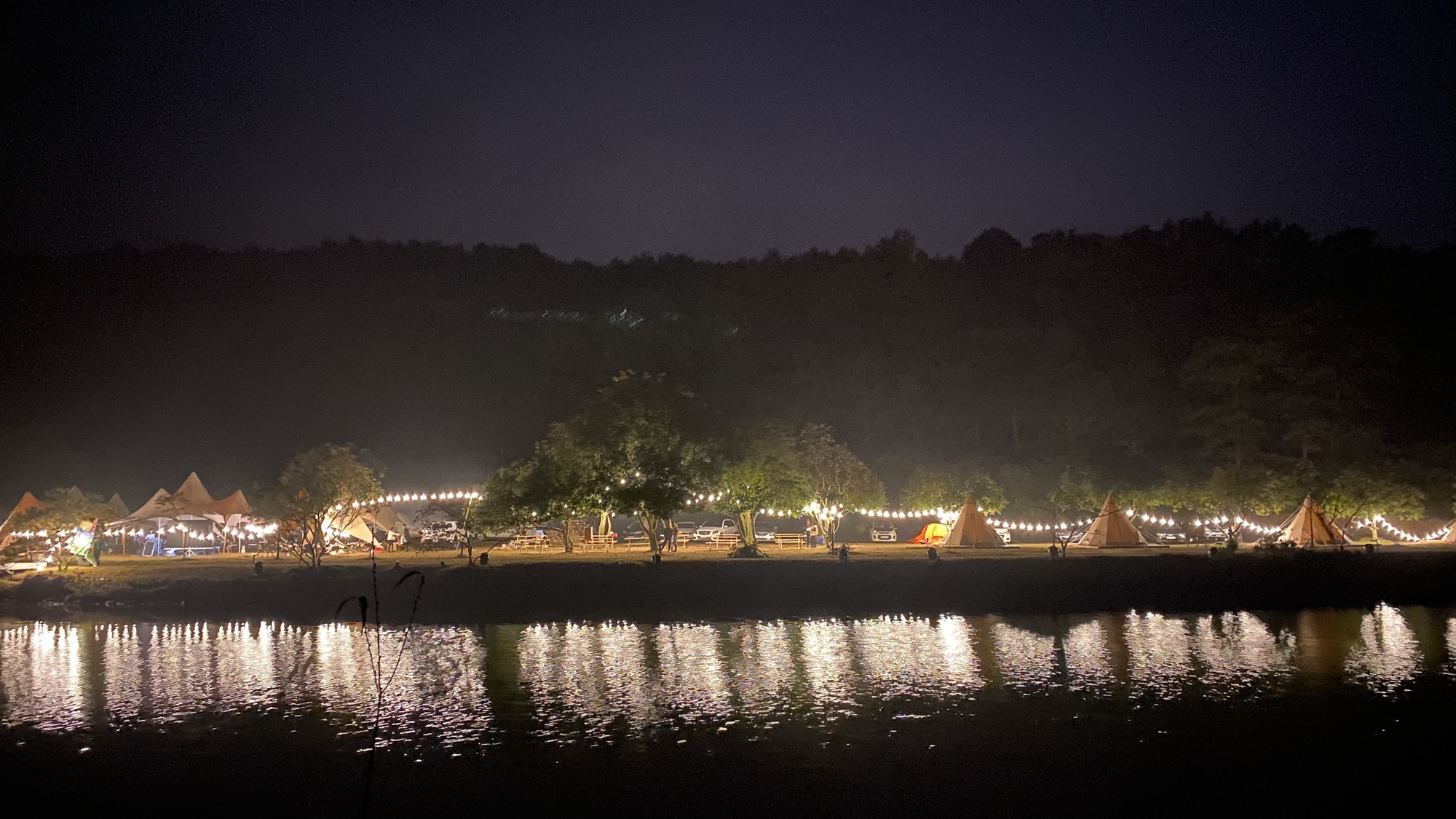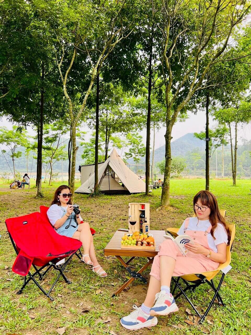 Khu cắm trại view mặt hồ có diện tích lên tới 2 hecta để mọi người hạ trại nghỉ ngơi với vàm cỏ cỏ xanh mướt nấp dưới những tán cây cổ thụ, với khá nhiều tiện ích từ vui chơi đến ăn uống.