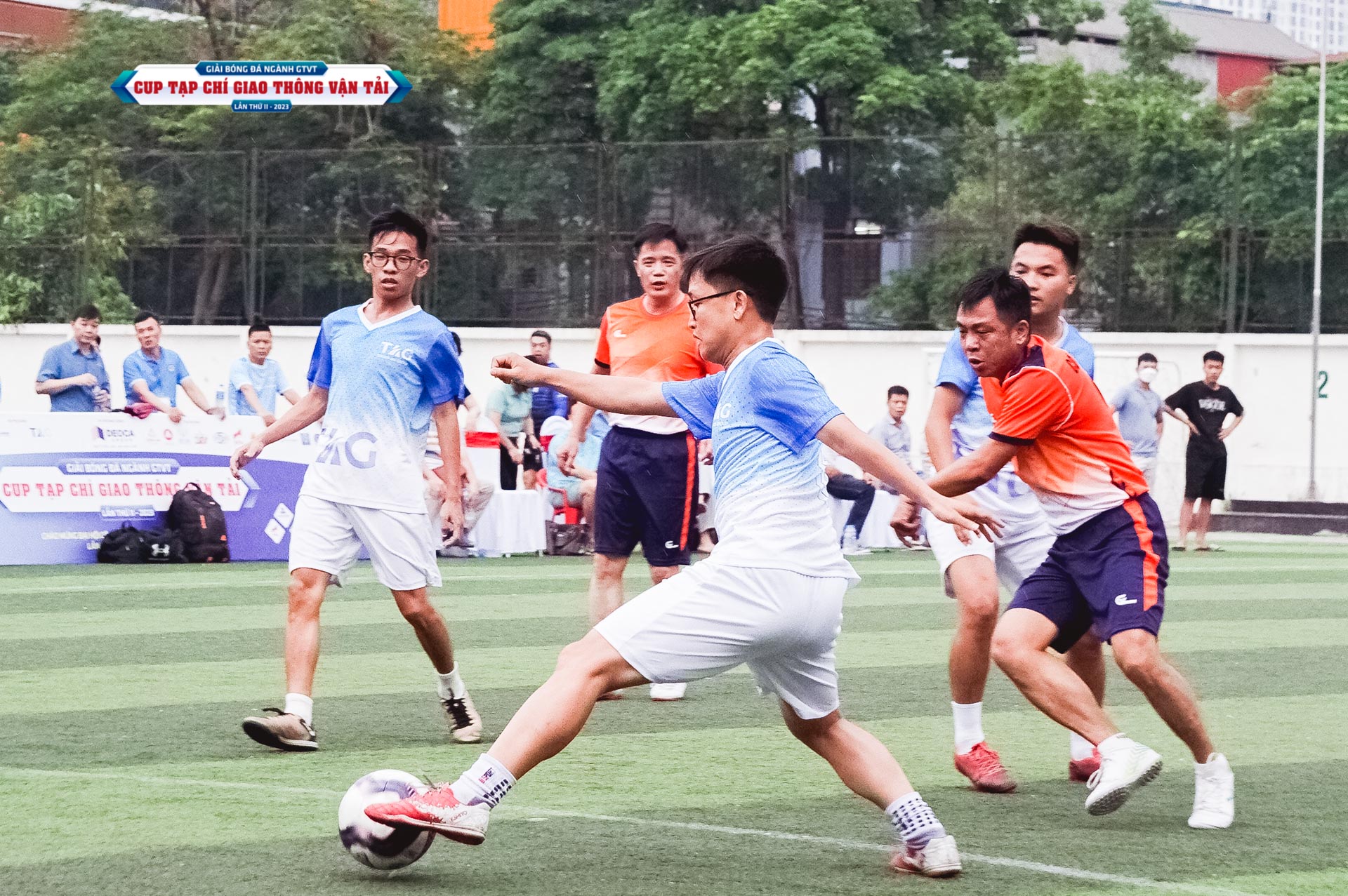 Trận Chung kết Giải bóng đá ngành GTVT tranh Cup Tạp chí GTVT năm 2023 giữa Đội Tập đoàn Thuận An và Đội Cơ quan Bộ GTVT diễn ra vào chiều tối 4/6/2023