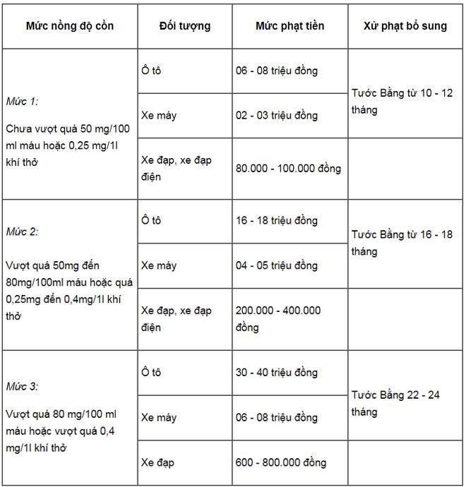 8 triệu và tước giấy phép lái xe khi bia rượu quá nhiều
