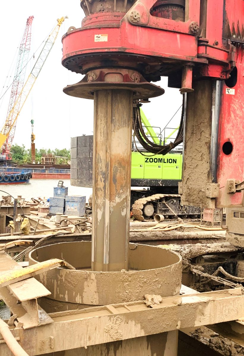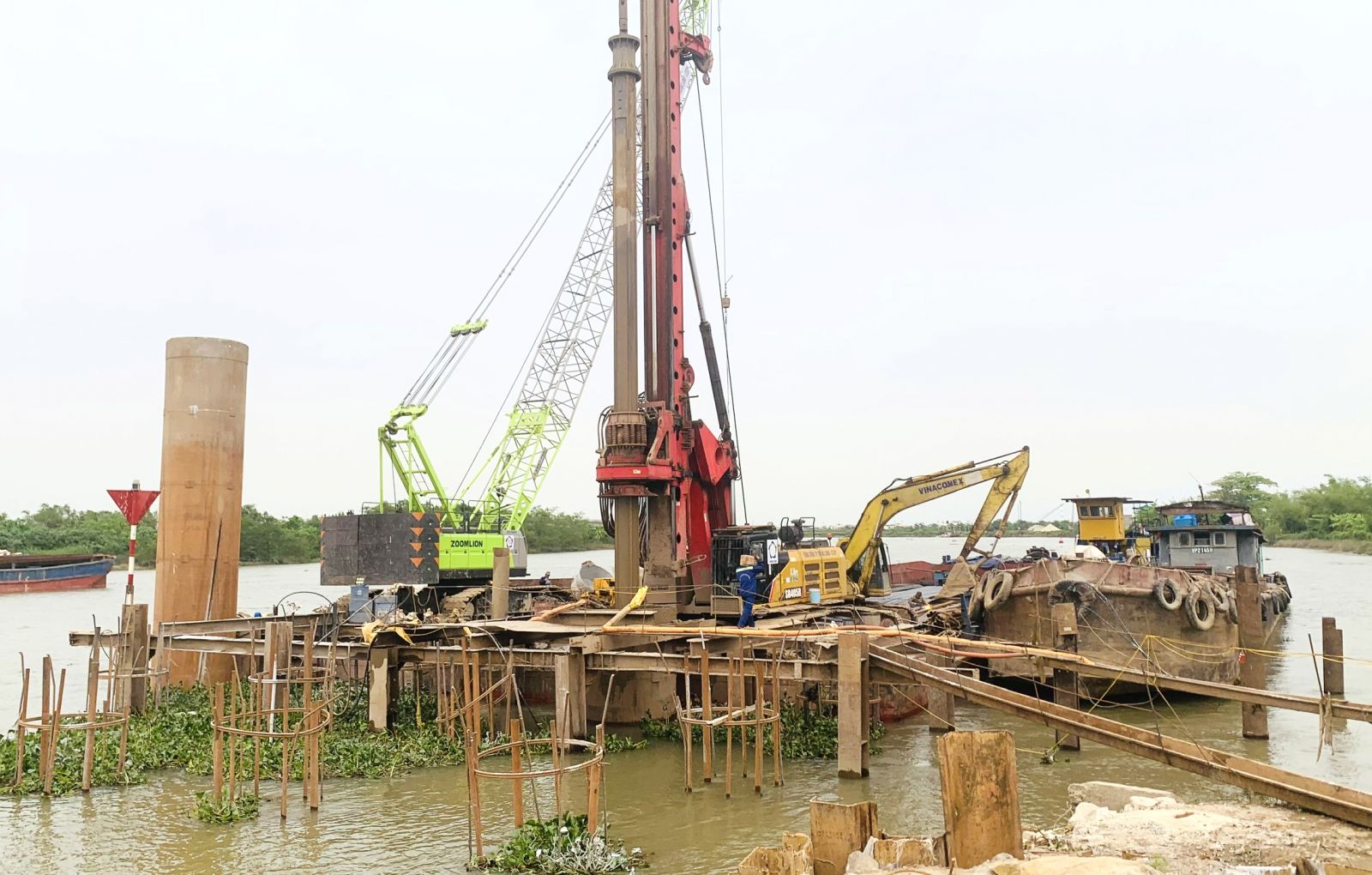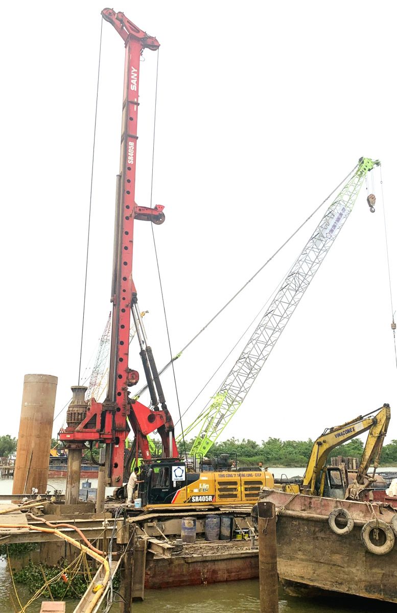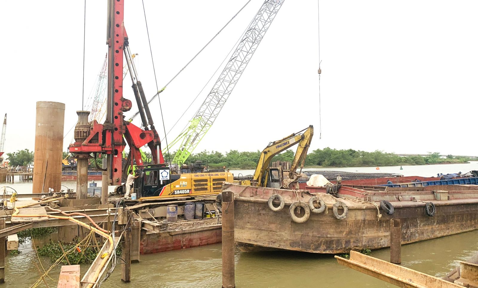 Đến nay, một số hạng mục chính đã đạt được kết quả cụ thể. Tại trụ T8, nhà thầu đã hoàn thành phần thân trụ và đang tiến hành lắp dựng đà giáo phục vụ thi công xà mũ. Trong khi đó, trụ T9 đã hoàn thành 12/16 cọc khoan nhồi đường kính D2000 dưới sông.