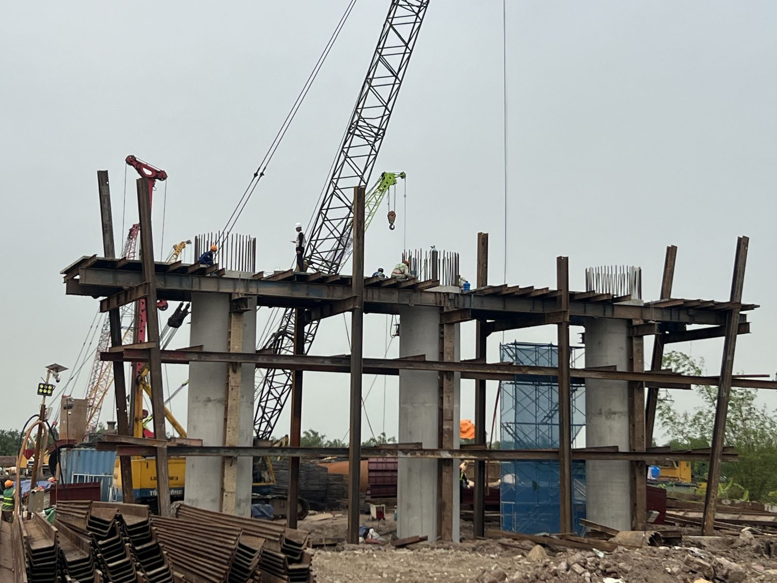 Một số hình ảnh thi công cầu vượt sông Trà Lý: