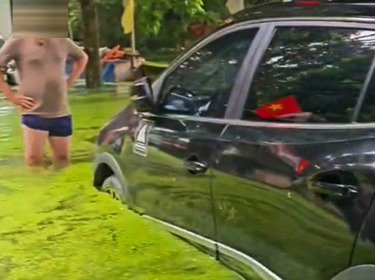 Theo VFS Garage, chiếc VinFast VF e34 đã ngâm trong nước 3 ngày với mực nước vượt nắp ca-pô.