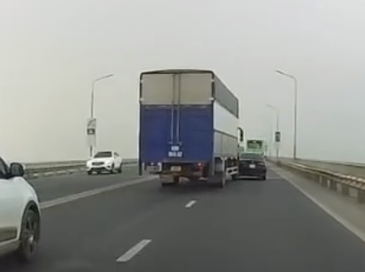 Camera hành trình xe phía sau ghi lại, chiếc ô tô tải đang di chuyển, nhưng phía trước khá đông xe. Do đó, tài xế đã xi-nhan rồi lập tức chuyển làn mà không quan sát bên cạnh. Lúc đó, chiếc ô tô con đang đi bên cạnh rơi vào điểm mù của xe tải nên đã bị đâm từ phía sau.