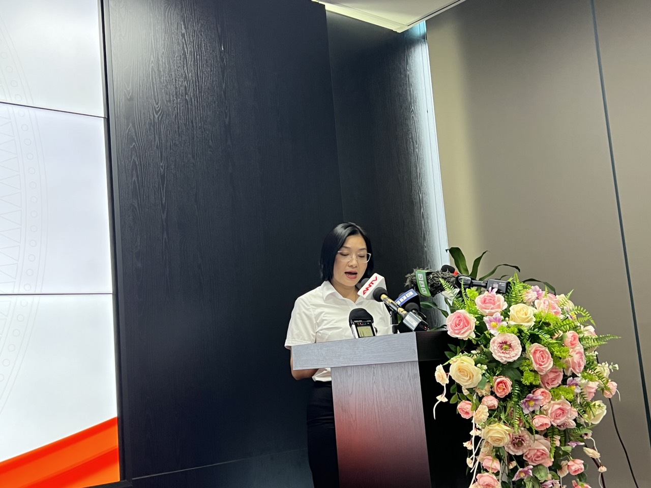 Bà Lâm Thị Mai Anh, Giám đốc Công ty Đấu giá hợp danh Việt Nam phát biểu tại buổi họp báo.