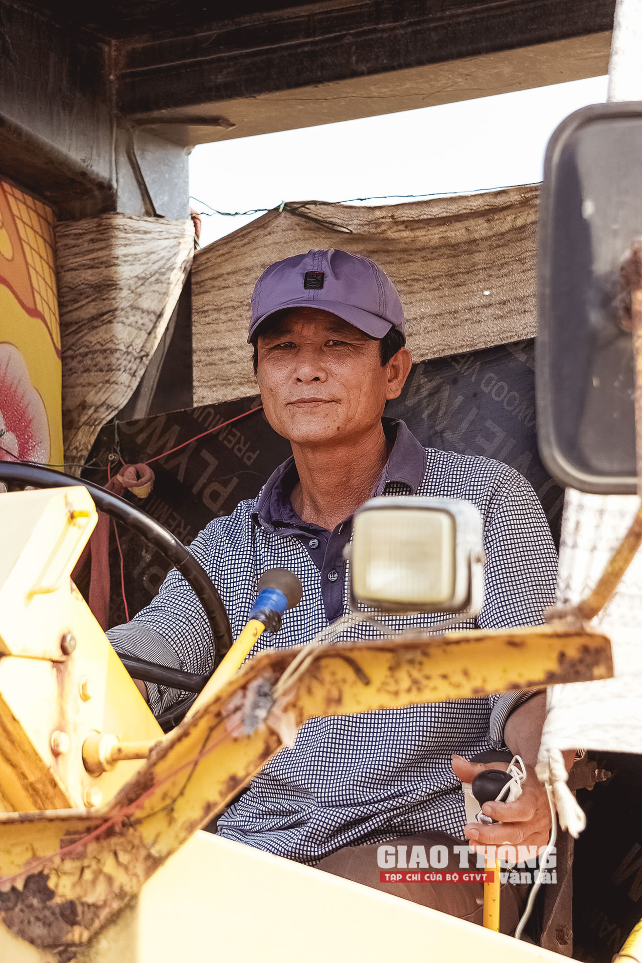 Phút nghỉ ngơi của một công nhân lái máy sau khi hết ca làm việc