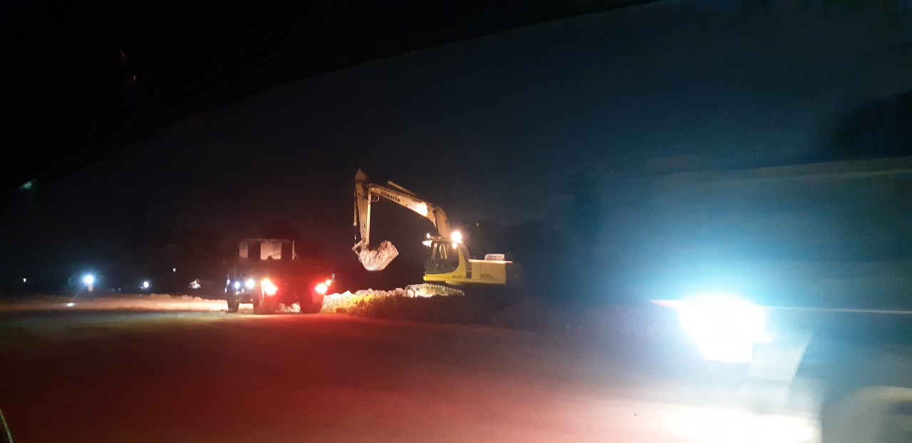Không chỉ thi công ban ngày, nhà thầu Thành Huy còn tổ chức các múi thi công ban đêm để đẩy nhanh tiến độ gói thầu