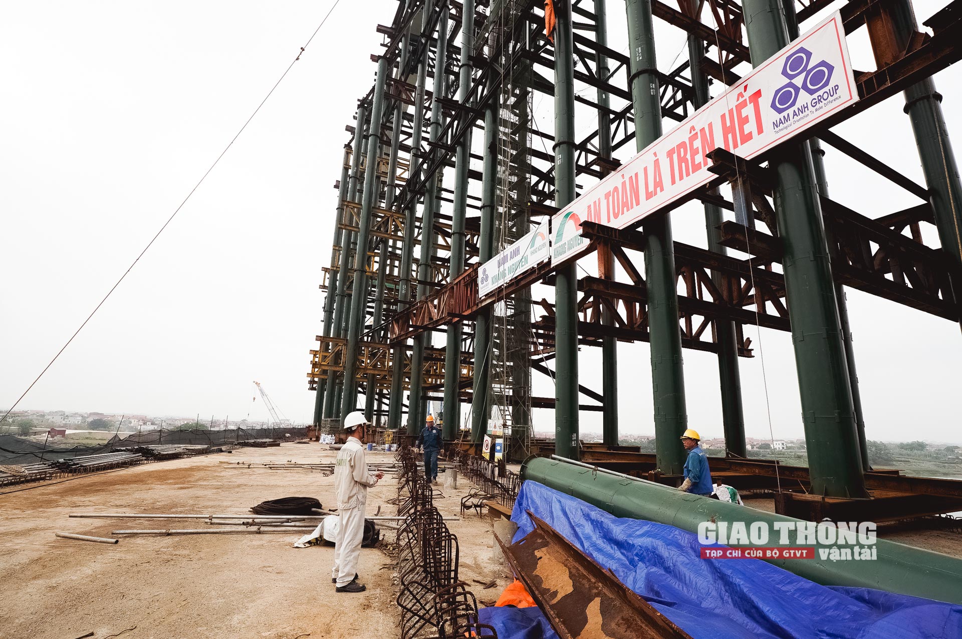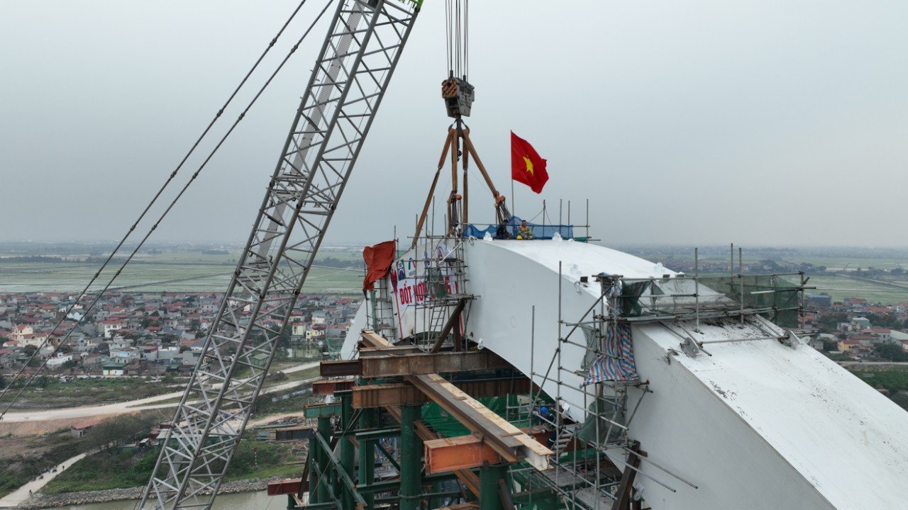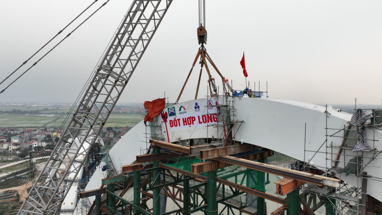 Trao đổi với Tạp chí Giao thông vận tải, ông Phạm Văn Hoàng - Phó giám đốc Ban điều hành dự án của liên danh nhà thầu Nam Anh - Khang Nguyên cho biết, ngoài nhịp vòm thép giữa, nhà thầu Nam Anh - Khang Nguyên còn đảm nhiệm vai trò sản xuất và lắp đặt hoàn chỉnh kết cấu vòm thép nhịp biên bên phía Thuận Thành (từ trụ P22 - P23) dài 67,5m.