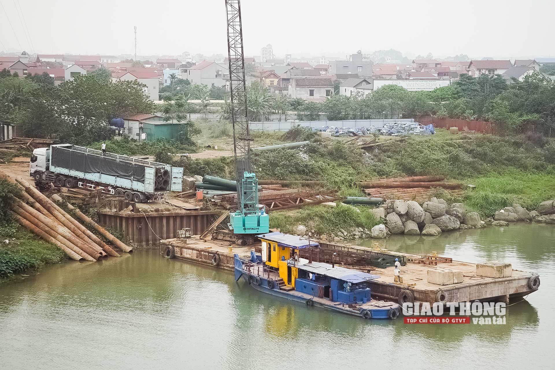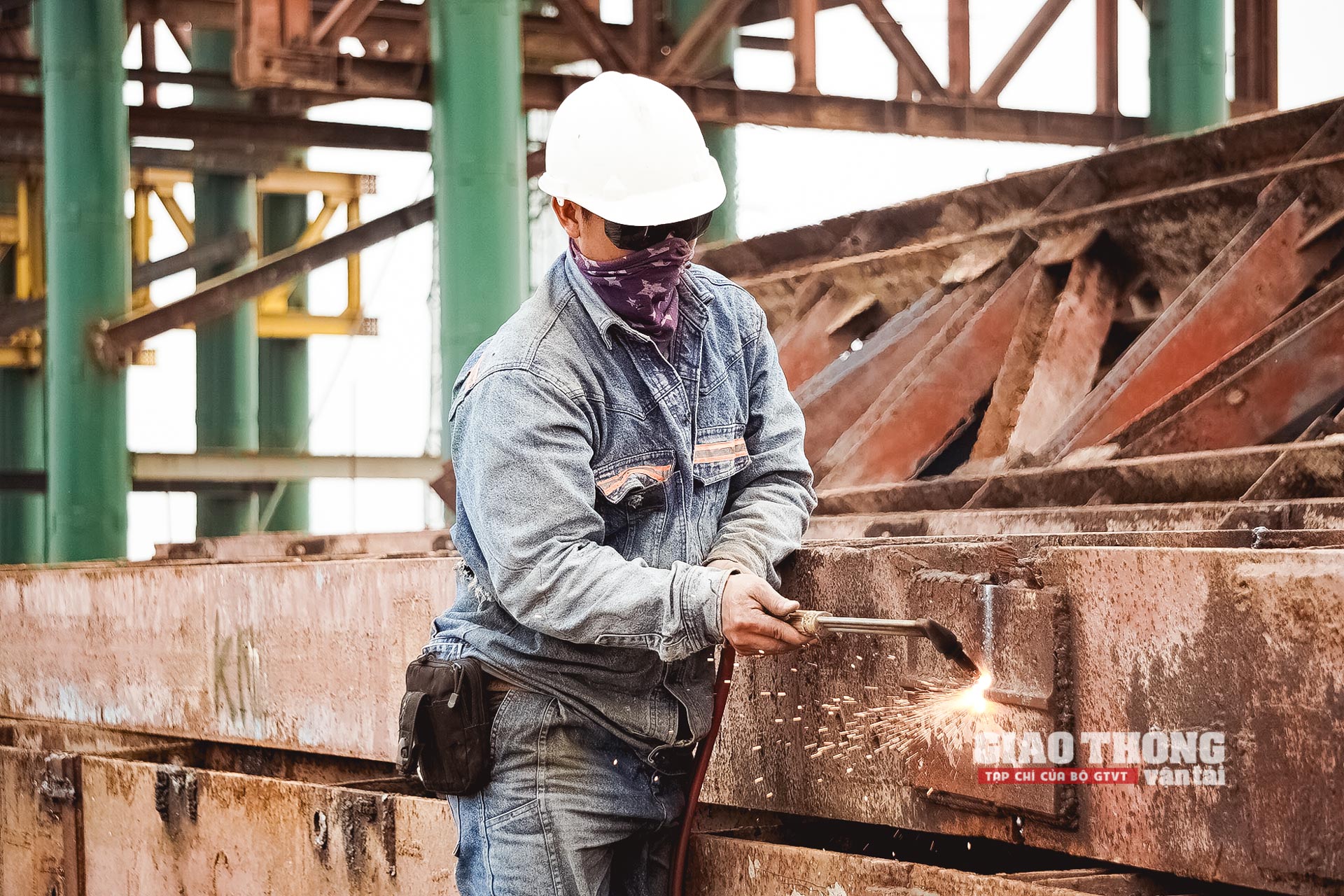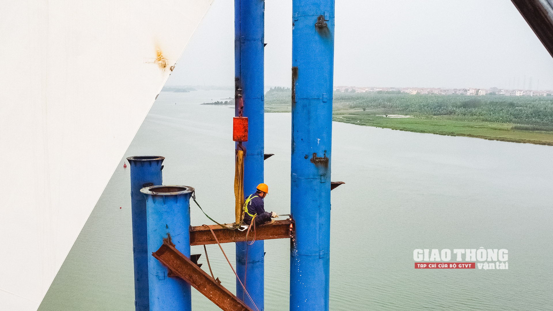 Để thi công kết cấu vòm thép, từ tháng 9/2022, nhà thầu phải tiến hành lắp dựng đà giáo 2.400 tấn, cao 77m và sử dụng cẩu 800 tấn trên sà lan 7.800 tấn để cẩu các đốt vòm thép.