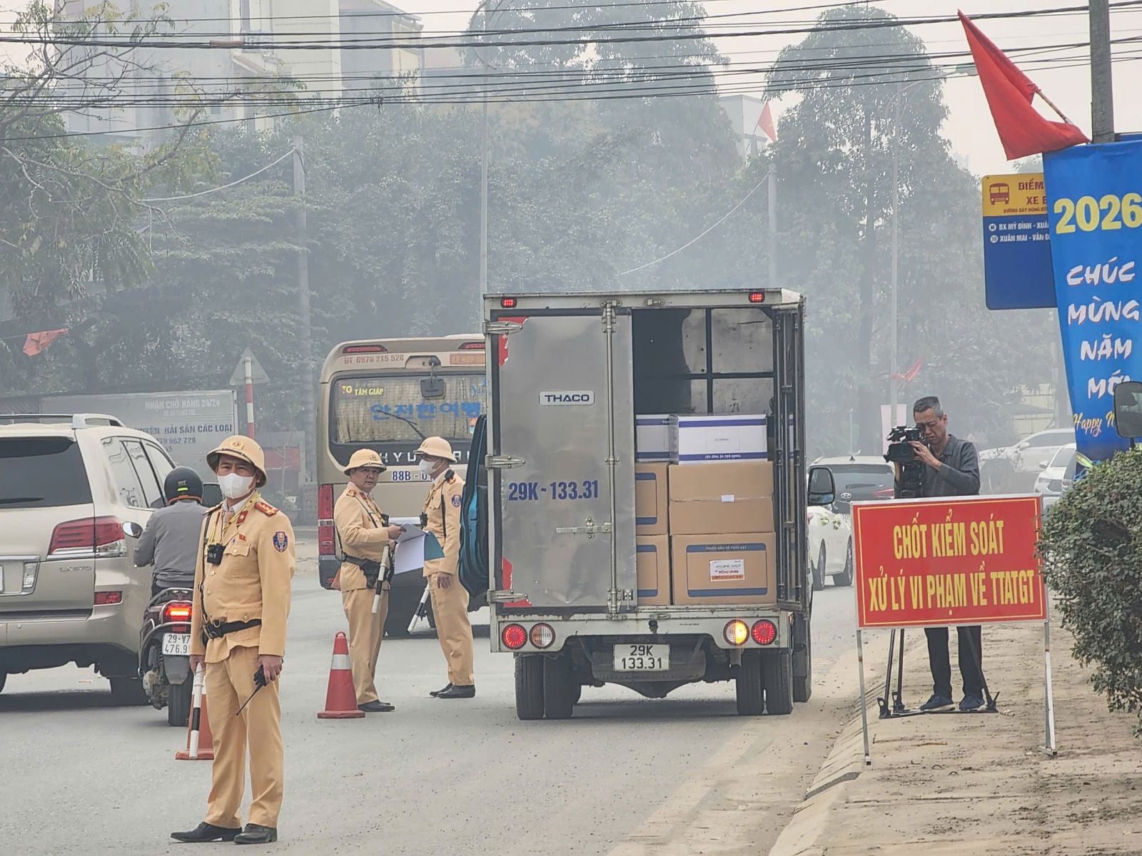 CSGT Hà Nội kiểm tra xe tải vận chuyển hàng hoá trên tuyến đường Hồ Chí Minh dịp cuối năm.