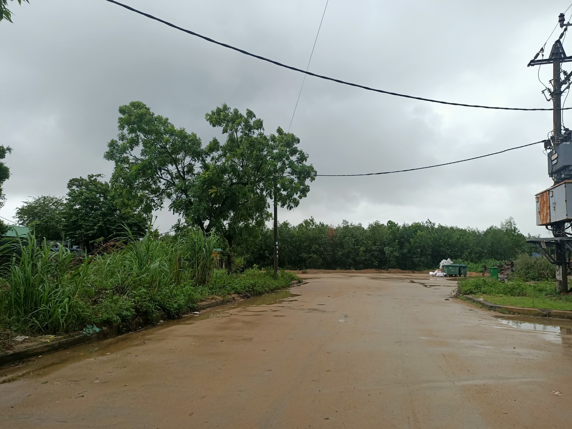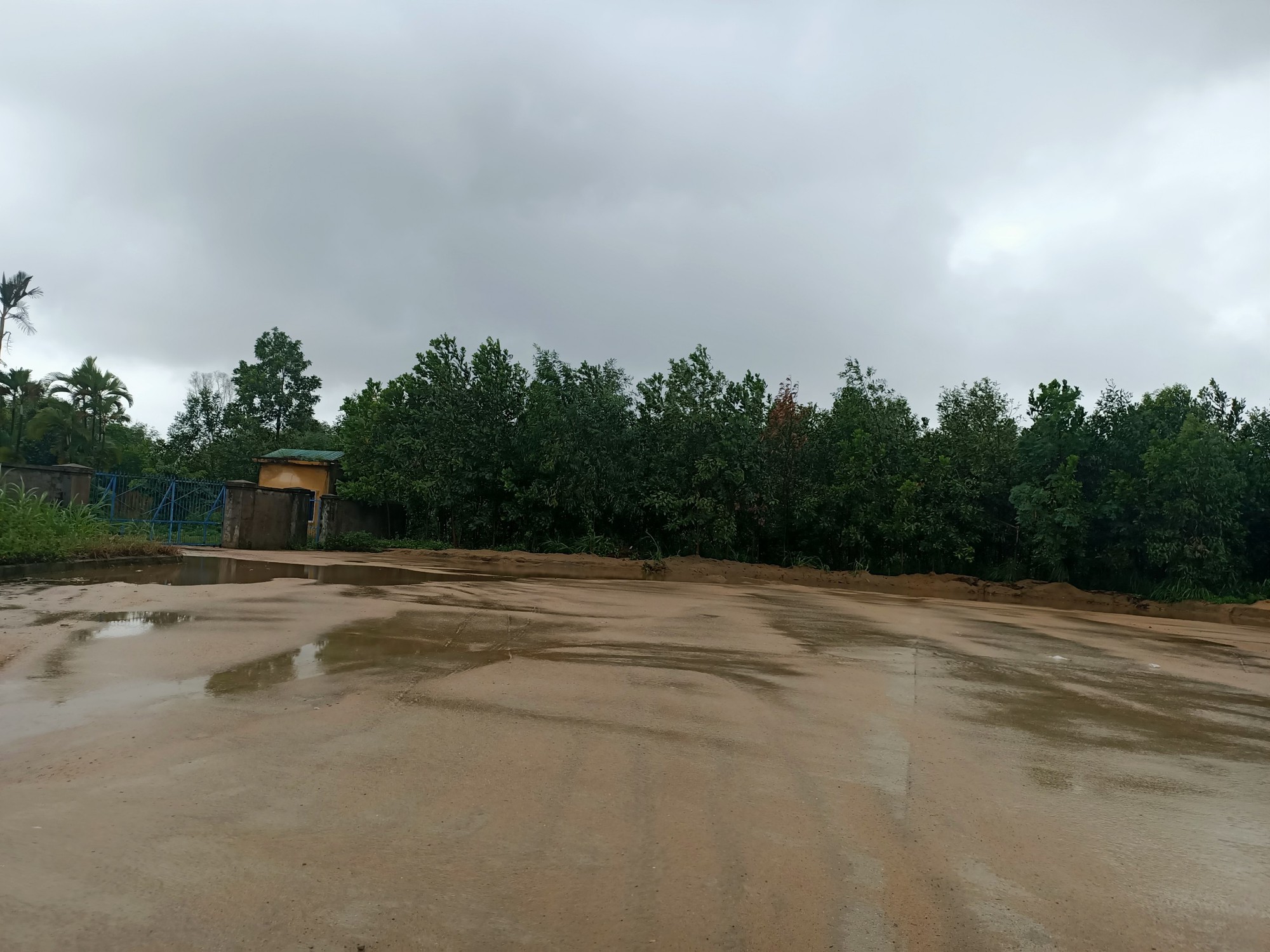 Tiếp tục đi sâu vào khu dân cư thôn Độc Lập (xã Tịnh Ấn Tây), nằm liền kề phía sau cụm công nghiệp-làng nghề Tịnh Ấn Tây, PV cũng ghi nhận thêm một bãi tập kết cát có khối lượng "khủng". Những đống cát còn tươi mới, đường vào ra bãi, tuyến đường bê tông quanh bãi cát còn nguyên vệt bùn đất bánh xe ben để lại.