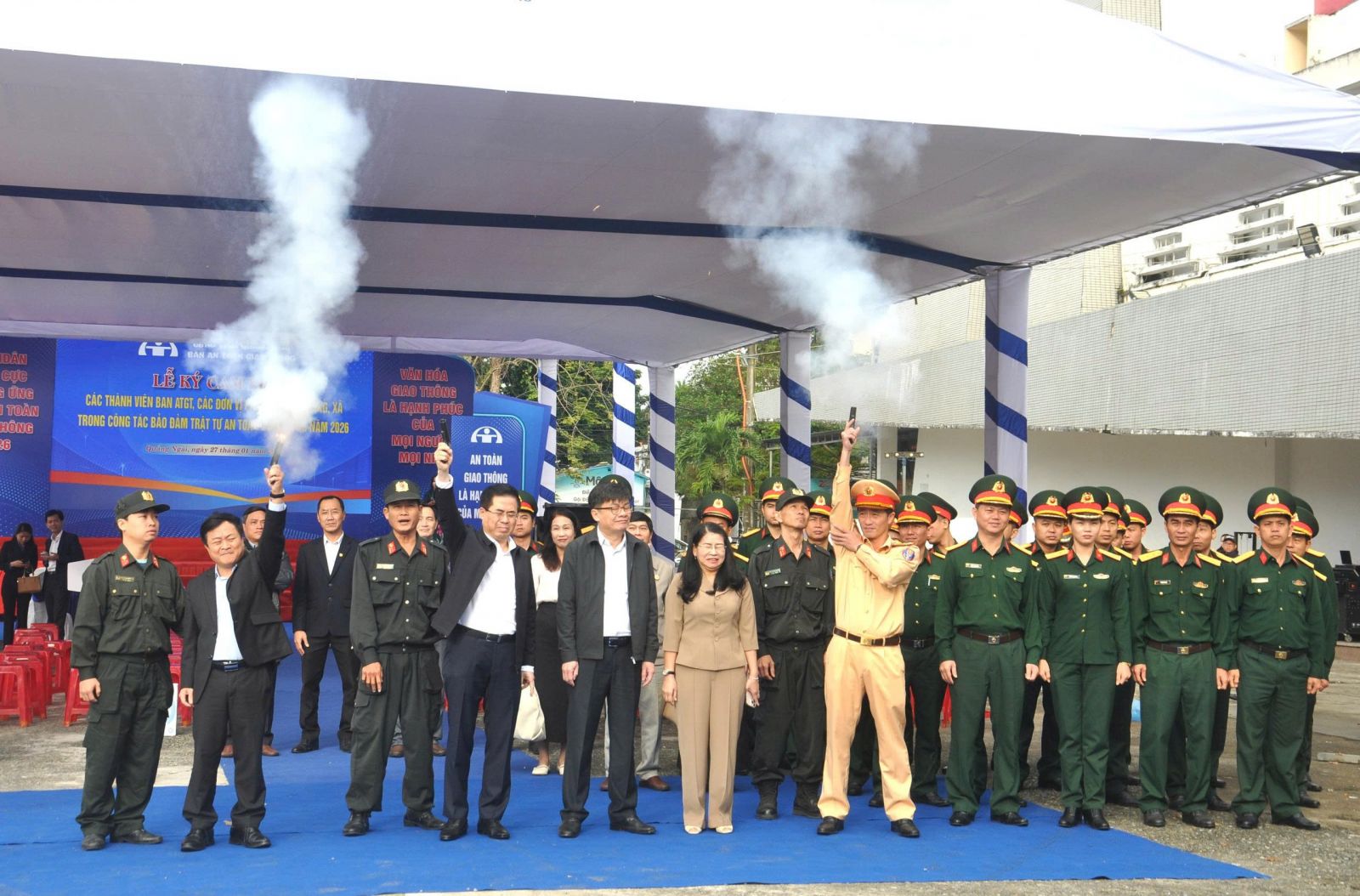 Sáng 27/01, Ban An toàn giao thông (ATGT) tỉnh Quảng Ngãi tổ chức Lễ phát động và ra quân tuyên truyền hưởng ứng năm ATGT 2026.