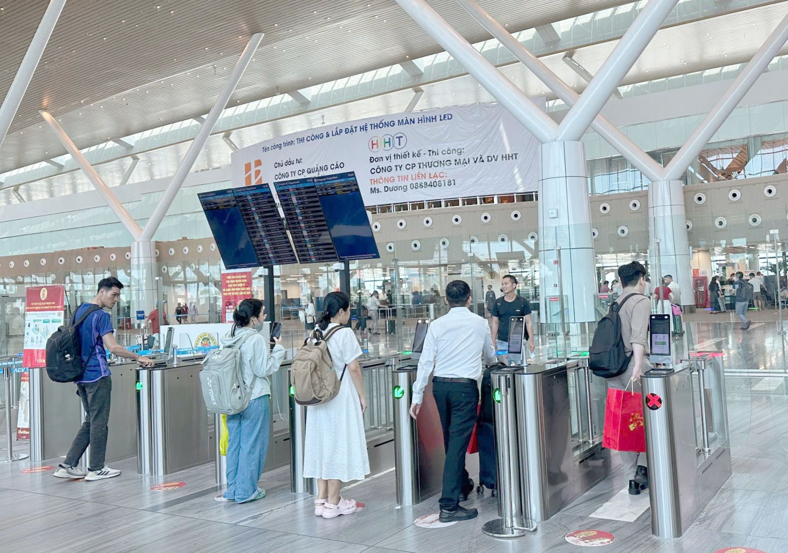 Ngoài ra, sân bay Tân Sơn Nhất triển khai ứng dụng định danh, nhận diện sinh trắc học phục vụ làm thủ tục lên tàu bay, bố trí lại và lắp đặt bảng đầu cọc nhận biết line Boarding Bio tại gate nhà ga T3 sân bay Tân Sơn Nhất bảo đảm chất lượng dịch vụ, nâng tầm hiệu quả hoạt động và mang lại sự tiện lợi tối đa cho hành khách.