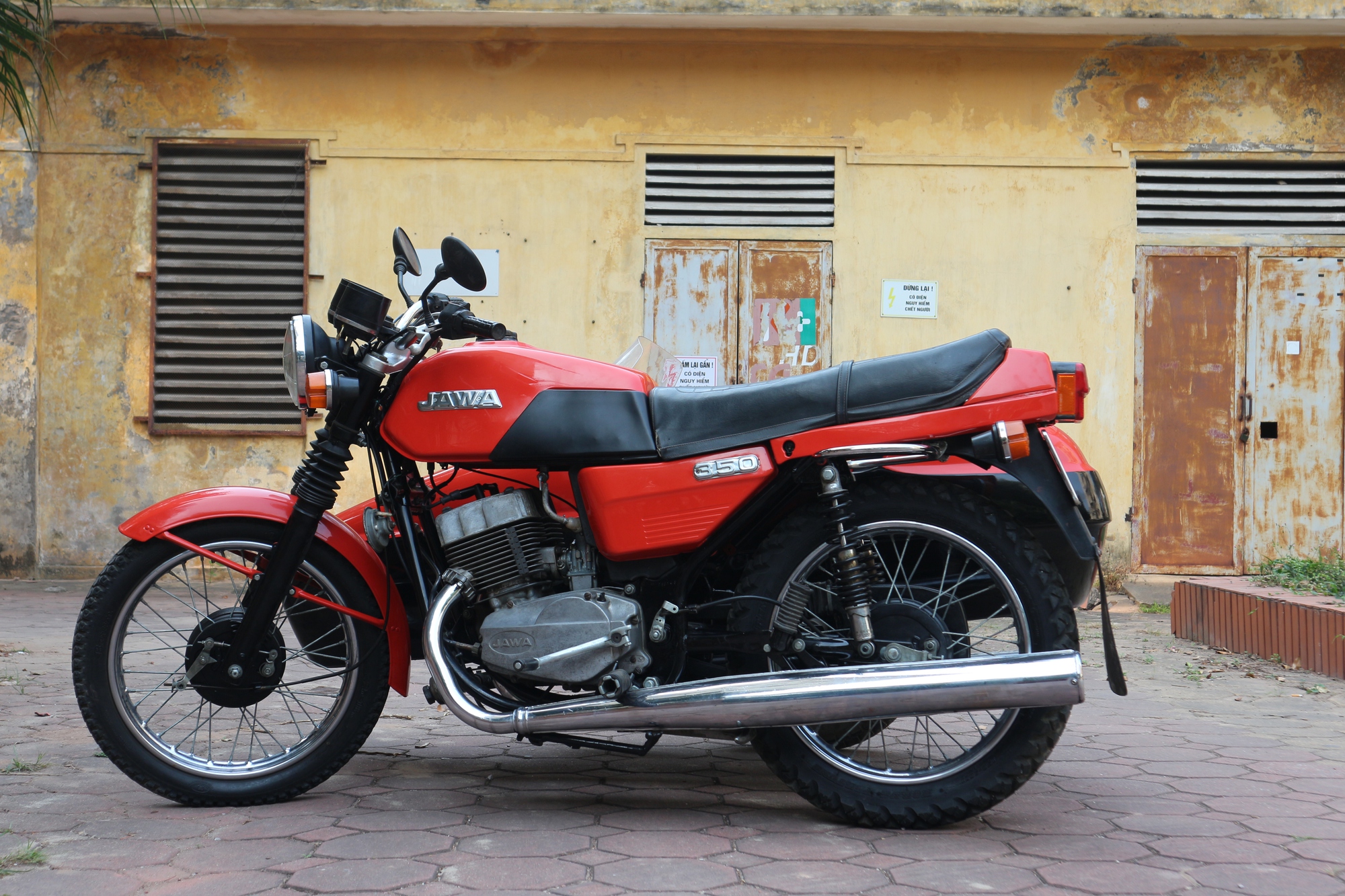 Chiếc xe Jawa 350-638 Sidecar hiện tại đang được chủ nhân chào bán 225 triệu đồng còn khá mới, mặc dù đã được sản xuất cách thời điểm hiện tại gần 40 năm, một số điểm khiếm khuyết do tác động của thời gian đã được phục chế một cách kĩ lưỡng. Xe được khởi động bằng cần đạp nhưng khá nhạy nổ. Đặc biệt là chiếc xe được gắn thêm một chiếc thuyền chính hãng, vừa có thể chở thêm người thứ 3 và giúp người lái không phải chống chân khi dừng đỗ.
