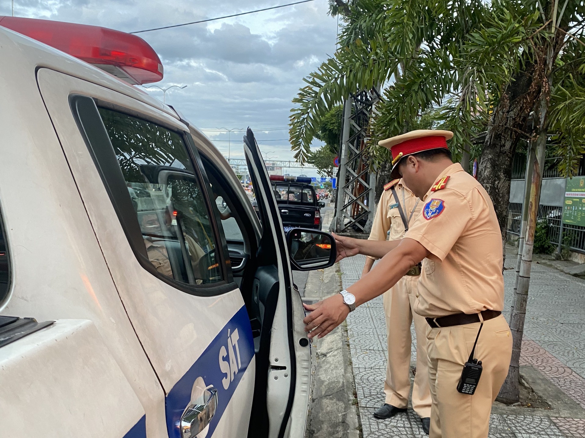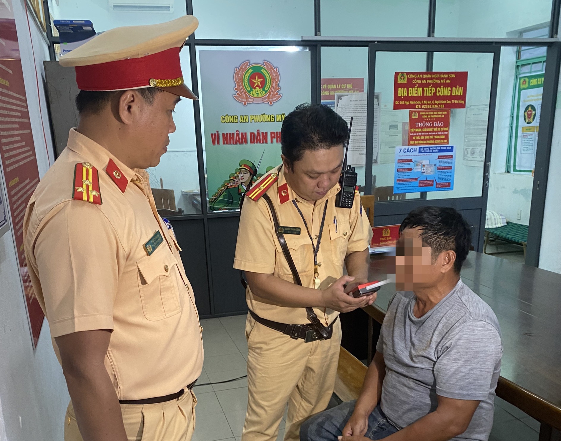 Lúc này, tổ tuần tra do Thiếu tá Thiều Ngọc Tiến thuộc phòng CSGT, Công an Đà Nẵng nhận được tin báo từ bộ phận nghiệp vụ đã nhanh chóng sử dụng xe công vụ BKS: 43A-005.01 đến hiện trường, ra hiệu dừng xe, kiểm tra.