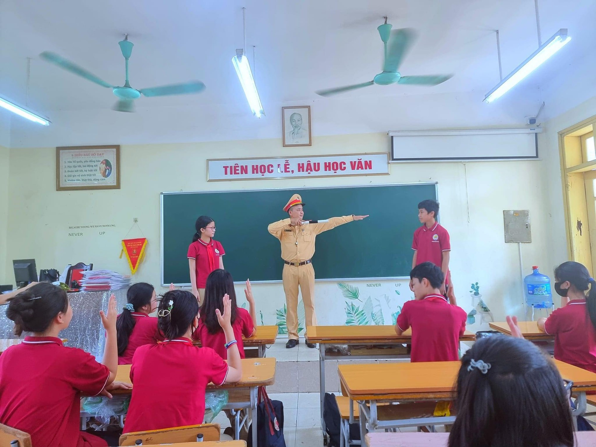 Một số hình ảnh CSGT Hà Nội tuyên truyền ATGT cho học sinh trường học trên địa bàn.