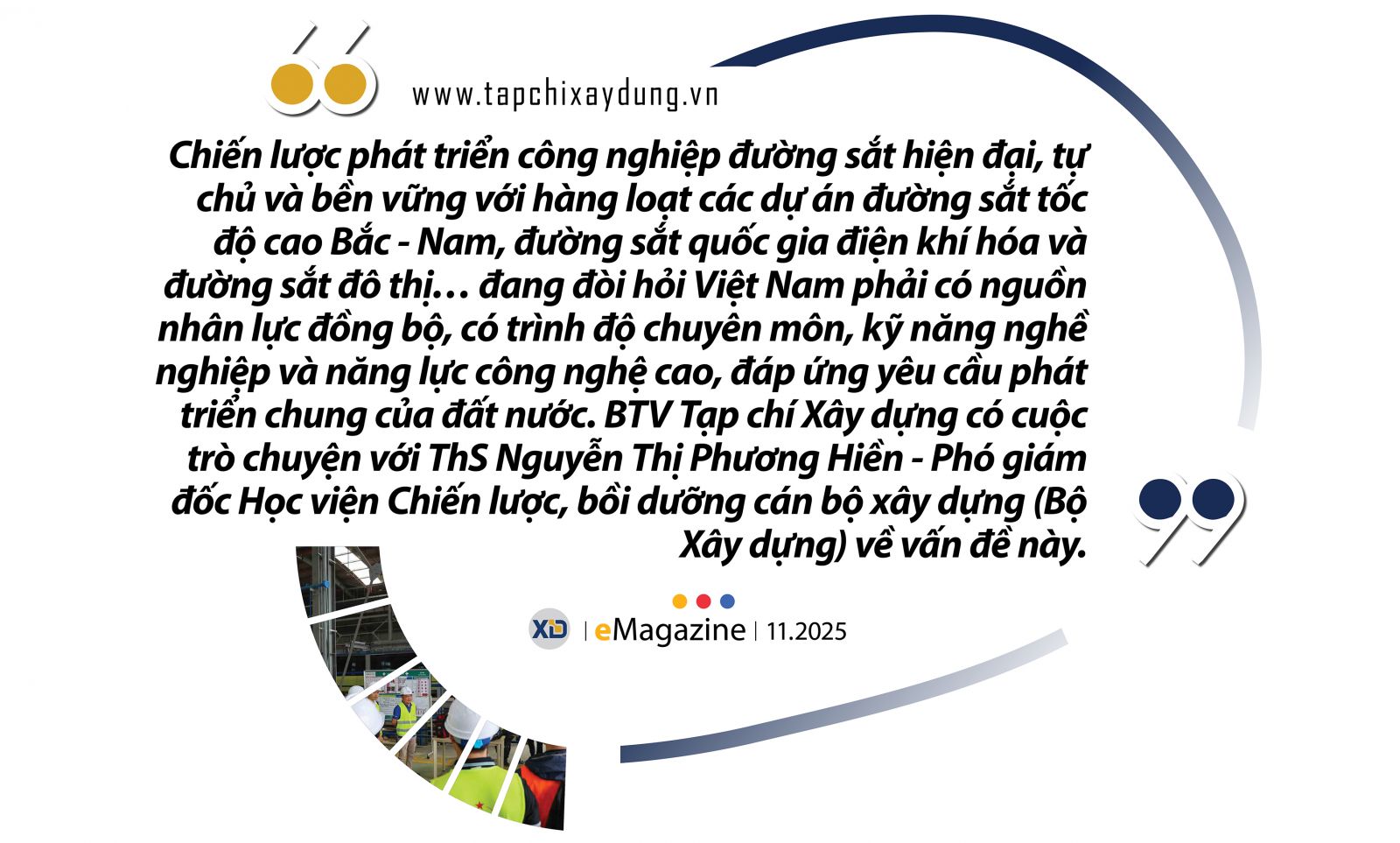 Phát triển nguồn nhân lực chất lượng cao chính là chìa khóa để ngành Đường sắt Việt Nam vươn lên làm chủ công nghệ, bảo đảm tính tự chủ, bền vững và đáp ứng yêu cầu phát triển trong kỷ nguyên mới. Tôi tin tưởng rằng, với nỗ lực chung của cả bộ máy và tinh thần đổi mới mạnh mẽ, Việt Nam sẽ sớm xây dựng được một đội ngũ kỹ sư, chuyên gia và công nhân lành nghề đủ năng lực làm chủ những công trình đường sắt hiện đại, vươn tầm khu vực.