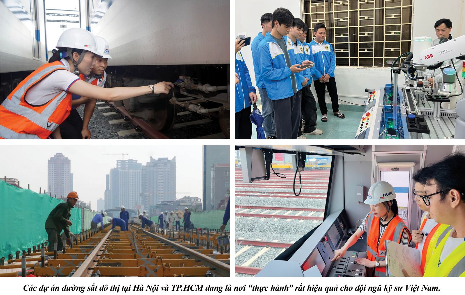 Song song với đó, các dự án đường sắt đô thị tại Hà Nội và TP.HCM đang là nơi “thực hành” rất hiệu quả cho đội ngũ kỹ sư Việt Nam. Việc tham gia trực tiếp vào lắp đặt, vận hành, bảo trì dưới sự hướng dẫn của chuyên gia quốc tế giúp họ rèn luyện kỹ năng nghề, tác phong công nghiệp và từng bước làm chủ công nghệ điện khí hóa, tín hiệu tự động tạo nền tảng cho tương lai ngành Đường sắt Việt Nam.