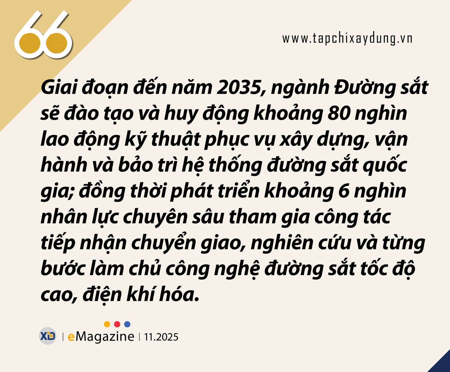 Bên cạnh đó, cần có tầm nhìn dài hạn về tái cơ cấu việc làm sau 2035. Khi các dự án lớn hoàn thành, lực lượng kỹ sư và công nhân cần được chuyển hướng sang bảo trì, chế tạo và dịch vụ kỹ thuật đường sắt, tránh “đứt gãy” nhân lực. Kinh nghiệm từ Trung Quốc, Nhật Bản và Hàn Quốc cho thấy duy trì liên tục chuỗi đào tạo - sản xuất - bảo trì là chìa khóa phát triển bền vững.