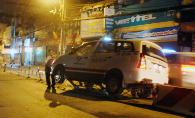 | Tài xế taxi gọi đồng nghiệp đến giải cứu lúc 0g35 sáng 2-11- Ảnh: M.C. |